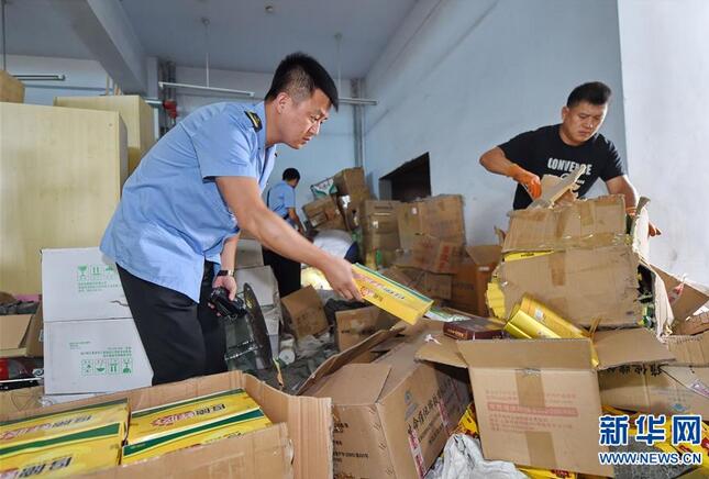 8月24日,工作人员在清点准备销毁的假冒保健品。 当日,长春市食品药品监督管理局食品稽查分局集中销毁了一批近期查获的假冒保健品、化妆品及“黑作坊”生产的不合格食品,共计20余个品种,总重量约2吨,价值80余万元。新华社记者 张楠摄 |
