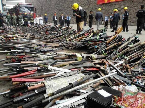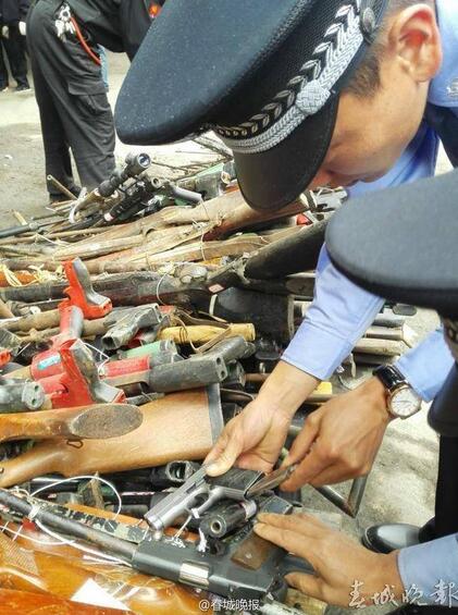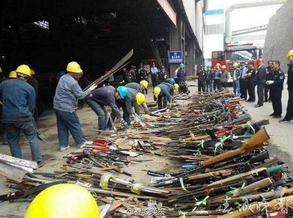 云南警方缉枪治爆 近4千刀枪被销毁瞬间变铁水