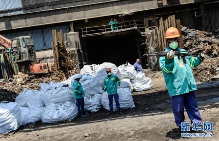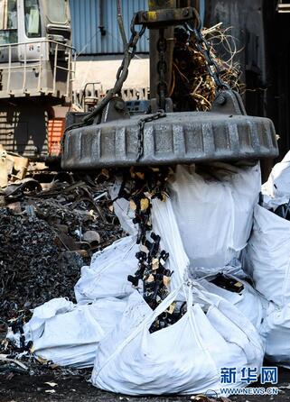 这是10月20日在南非杰米斯顿的枪支销毁现场拍摄的即将被运至熔炉销毁的数袋非法枪支。