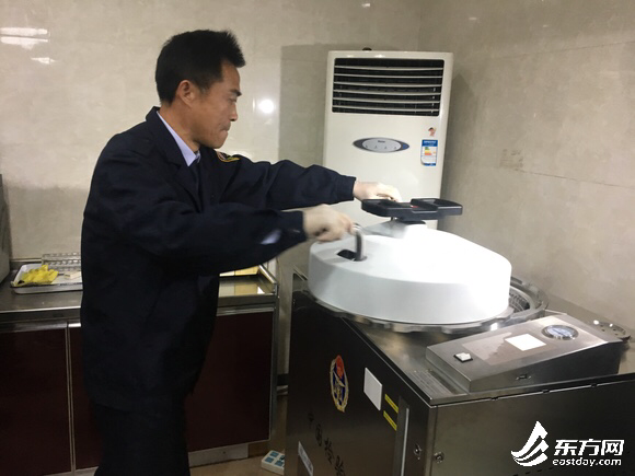 图片说明:工作人员将要销毁的种苗放入高压灭菌锅。经过121℃,20分钟的处理才能实现无害化