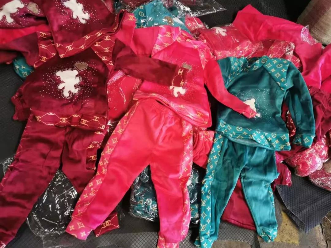 苏州某贸易公司向海关申报出口一批童装至伊拉克,但在申报要素中未提及品牌、规格、材质等信息。现场查验关员起初对箱门附近的货物开包后并未发现任何异常,但箱内货物各种不同的包装方式引起了关员的注意,果然在集装箱中后部发现蹊跷,包内夹带有大量印有“CHANEL”“LV”及“GUCCI”等品牌标识的童装。