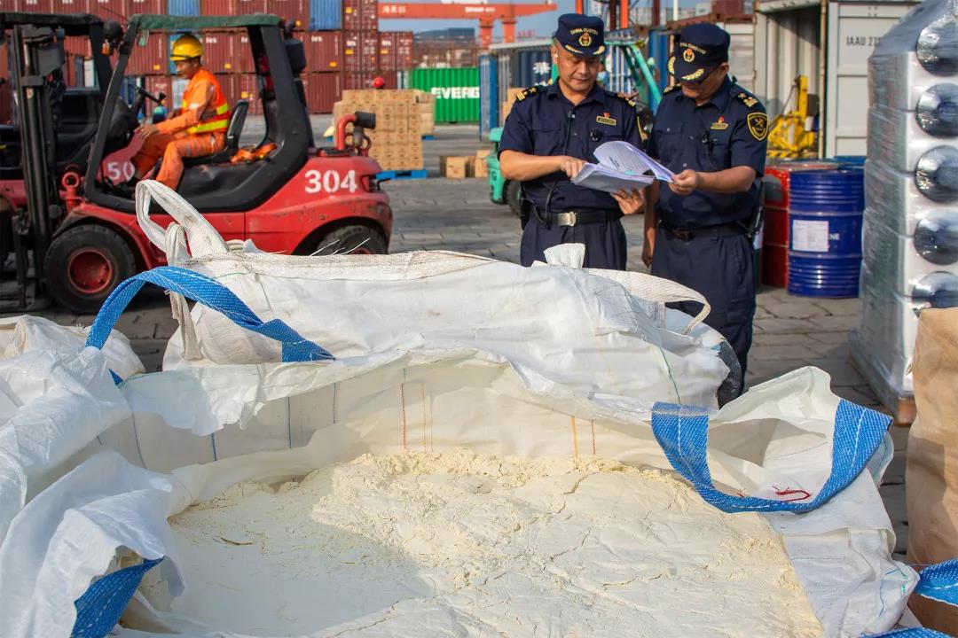 10月25日,经专业机构鉴定确认,厦门海关所属东渡海关此前查获送检的对苯二甲酸实际成分为包含有机成分的化工废物,总重197.7吨。这是该关今年查获的第二起该类化工固废,两起合计397.7吨。