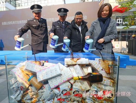 根据公安部统一部署,上海市公安局会同相关行政监管部门联合开展了打击食药环犯罪“昆仑”行动和整治食品安全问题联合行动成果宣传展示活动,体现上海警方全力维护食品药品环境安全、保护企业创新发展的坚定决心。活动现场销毁了一大批假冒品牌调味品、白酒、奶糖等。