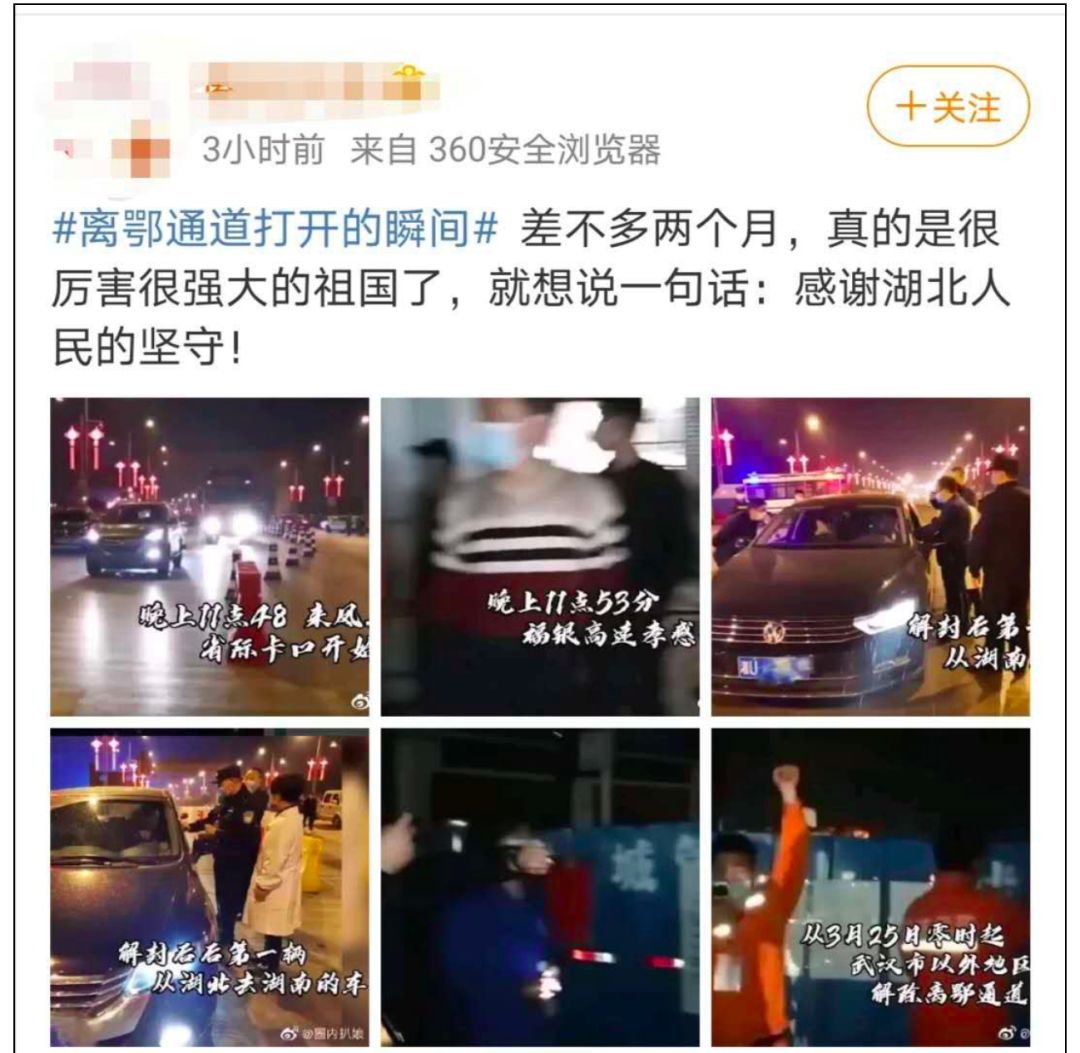 有北方网友说,湖北"解封",我一个外地人比他们还激动.也许,这种感觉就像是在鬼门关走了一遭的亲人,终于能回家了.所有的担心、惦念、不舍,都在拉开隔离闸门的那一刻,化成了无言的泪水.