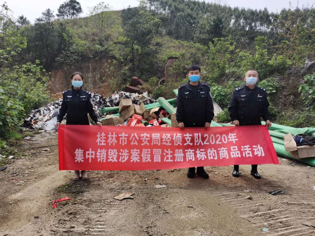 此次集中销毁的商品,均为桂林市公安局经侦支队民警办理案件时扣押后,经人民法院判决,由公安民警与见证人共同清点,专人运输、监销,并采用无害化填埋式进行销毁。