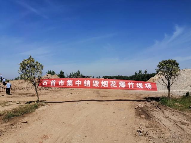5月13日9时35分,在石首市大垸镇普圣寺村砖瓦厂厂区某烟花公司负责人付正军点燃一挂鞭炮丢下装满烟花爆竹的大坑,石首市最后库存的六千余件烟花爆竹随着阵阵烟火被全部销毀。