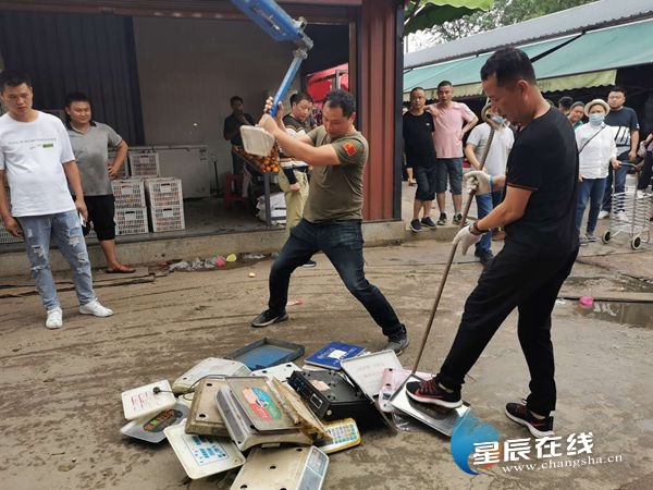 ![]() (将不合格的电子计价秤进行统一销毁。图片均由星辰全媒体记者 方筱/摄)
