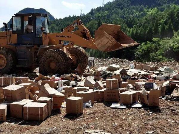 贵州茅台酒、贵州习酒、Vivo牌充电宝及手机配件等,在推土机的碾压下,粉身碎骨,现场酒香四溢,酒香味久久不散。约两个小时后,这些假冒伪劣产品全部与渣土混合在一起,成为垃圾。