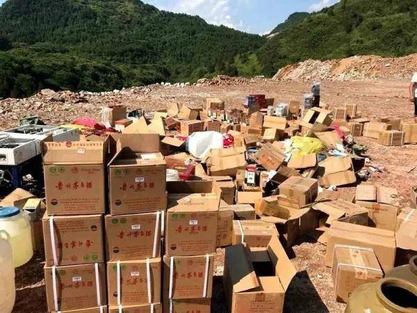 6月5日,贵州铜仁碧江警方在一渣土处理场销毁贵州茅台酒等涉案价值1000 余万元的假冒伪劣产品。
