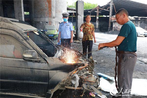 6月28日,在湖北省丹江口市公安局交警大队民警的监督下,依法对两辆外籍报废车进行了拆解销毁,彻底消除交通安全隐患。