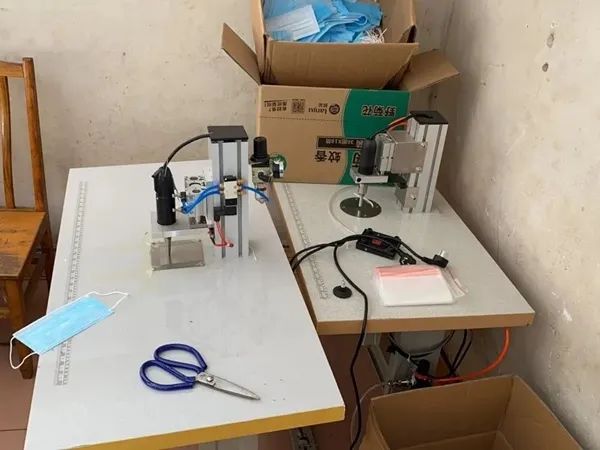 网格员心生怀疑,于是检查消防为由,入内检查,发现桌子上零散地放着一些待包装的口罩,在角落处还发现了一台点焊机器。