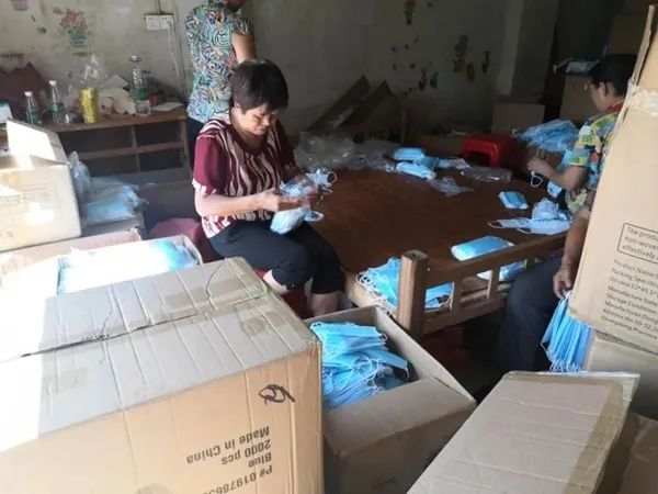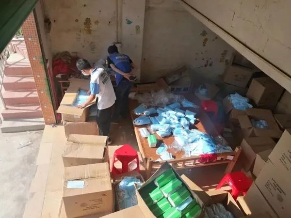 6月23日下午,广东省牛山社区网格员巡查至积善里新村五巷9号时,发现该出租房屋一楼的客厅摆放着几个大纸箱,几名工作人员正在将口罩打包放入纸箱中,从敞开的纸箱中看到里头装满了口罩。