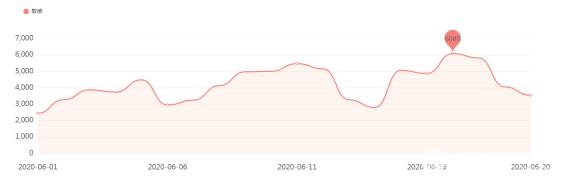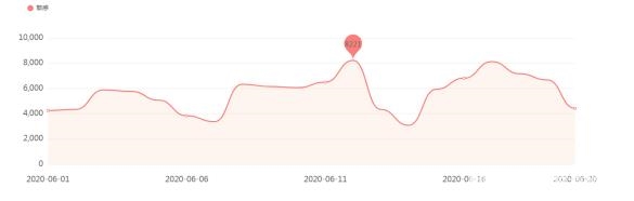 监测期内,共收集有关“直播带货”类负面信息112384条。每日负面信息量较为平稳,日均在5600条左右,其中6月12日和6月17日相对较高。