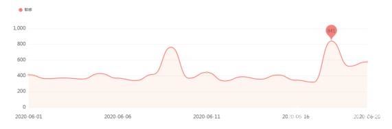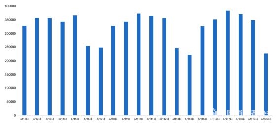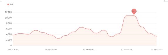在6月1日至6月20日共计20天监测期内,共收集“618”相关消费维权类信息6488460条,日均信息量32万余条。监测期间,消费维权信息虽呈现出曲线波动走势,但每日相关舆情数量较为均衡,6月17日最多,为382657条。