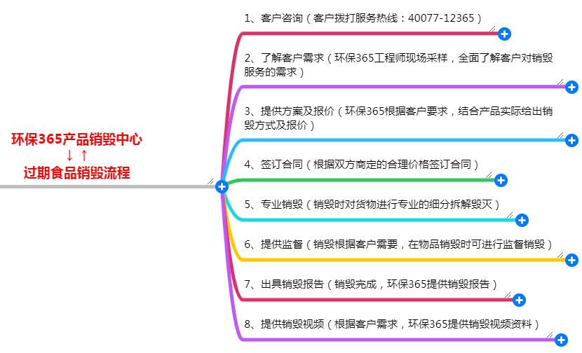 下面由环保三六五产品销毁中心为大家科普下关于过期食品销毁的流程(如图所示):