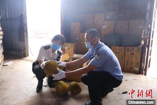 “此次销毁的榴莲均未办理检疫审批手续,也无输出国家出具的植物检疫证书,来源及卫生状况不明,存在极大的食品安全隐患,如流入市场将会严重危害消费者健康安全。”广西水口海关办公室一级行政执法员何宇思20日在销毁现场向记者介绍。