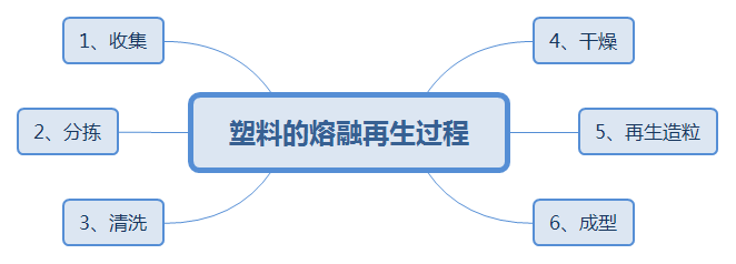 废旧塑料的熔融再生 塑料的熔融再生方法包括下述过程:废旧塑料的收集、分拣、清洗、干燥、再生造粒、成型。 1)废旧塑料的分拣 2)废旧塑料的清洗和干燥 3)再生造粒