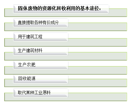 固体废物的资源化回收利用是指采取工艺技术从固体废物中回收有用的物质与能源,具体是指在社会大生产过程中,人们从环境中获取资源和能源,从生产、市场流通直到最后消费变成废物的各个环节又引入新生产-消费的循环系统,这样就可以很好地节约资源和能源。 由于固体废物污染危害严重,治理成本高,处理处置场地紧张,当今世界资源、能源缺乏,这使得各个国家对固体废物的认识已从消极的末端治理走向积极的资源化,世界各国提出了“资源循环”的口号,主动从固体废物中回收资源和能源,充分实现固体固体废物的资源化。