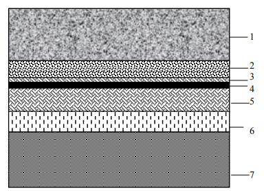 1-一般工业固体废物; 2-渗滤液导排层;3-保护层; 4-人工防渗衬层(高密度聚乙烯膜);5-粘土衬层;6-地下水导排层(可选);7-基础层 图A.1 单人工复合衬层系统示意图