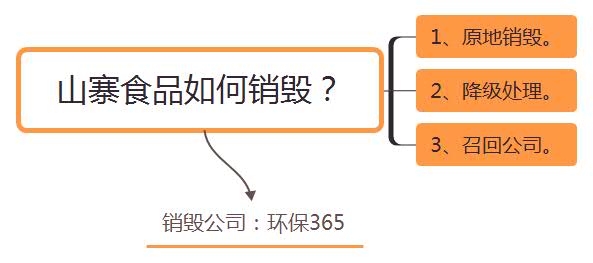 山寨食品如何销毁? 1、原地销毁。食用后会对人体健康造成危害的。 食品销毁的方法: a 对于过期原料应混杂添加其他物质,使其失去本身功能及价值,或对其原包装拆解再进行预处理销毁。 b 自行销毁或委托第三方环保企业进行集中粉碎或碾压破碎销毁。 c 委托具备环保资质及行政审批的销毁企业进行高温、无害化销毁处理。 d 委托本地区卫生填埋场进行专业深埋腐化销毁处置(条件不具备地区可参考,一般简易无害化焚烧处理) 2、降级处理。属于产品质量问题(如标签不合格),食用后对人体健康无损害。 3、召回公司。属于产品质量问题,不能直接降级处理。