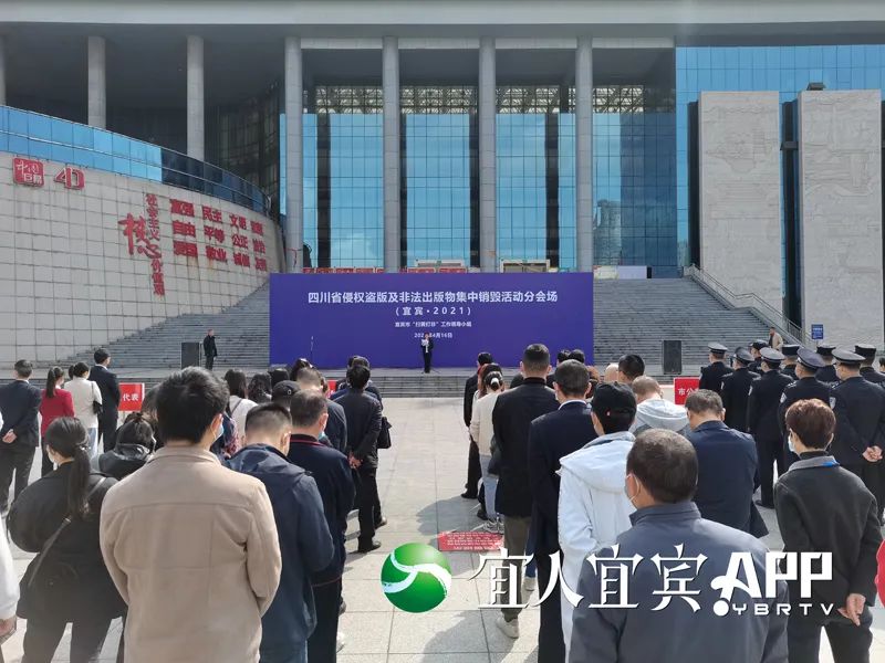 4月16日,宜宾市2021年侵权盗版及非法出版物集中销毁活动,在图书馆广场举行。
