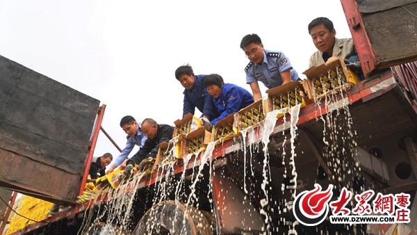 枣庄经侦支队集中销毁一批假啤酒