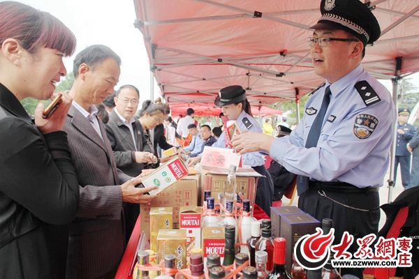 滕州分局民警现场向市民讲解如何辨别假冒伪劣产品