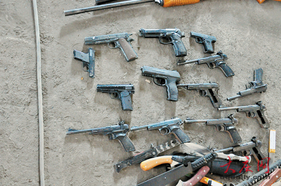 最终,这些枪支将被填入熔炉里。 整个过程由督察负责监督,治安支队民警负责警戒。 记者看到,本次集中销毁活动中,有非法枪支和管制器具,非法枪支中以单双管猎枪居多,同时还有几十支口径手枪。