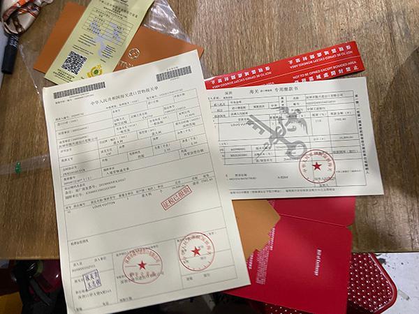 值得注意的是,在蔻驰包内,海关报关单上盖有“深圳市隆兴进出口有限公司”(下称“隆兴公司”)报关专用公章;LV包内的“海关进口增值税专用缴款书”上的缴款单位以及海关报关单上的收货单位均是“隆兴公司”,并盖有该公司报关专用公章。巴宝莉包内的海关报关单上同样是“隆兴公司”。