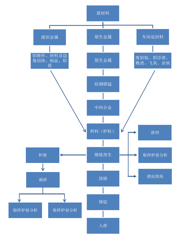 再生铸造铝合金的工艺流程(如下图):