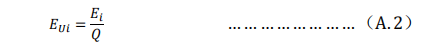 公式中: Eui—单位再生资源分拣量能耗,单位为吨标准煤每吨(tce/t)或千瓦时每吨(KWh/t); Ei—统计期内,分拣中心实际消耗的各种能源实物量,即主要生产系统、辅助生产系统和附属生产系统的综合能耗, 单位为吨标准煤或千瓦时每吨(KWh/t); Q —统计期内再生资源总分拣量,单位为吨(t)。 再生资源产出率 再生资源产岀率按照式(A.3)计算