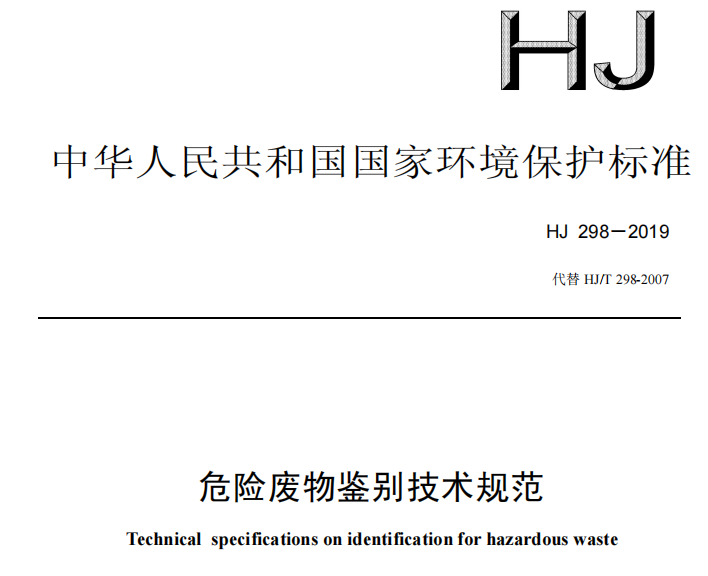 | 危险废物鉴别技术规范(HJ298-2019) |