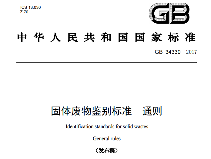 | 固体废物鉴别标准 通则 (GB 34330-2017) |