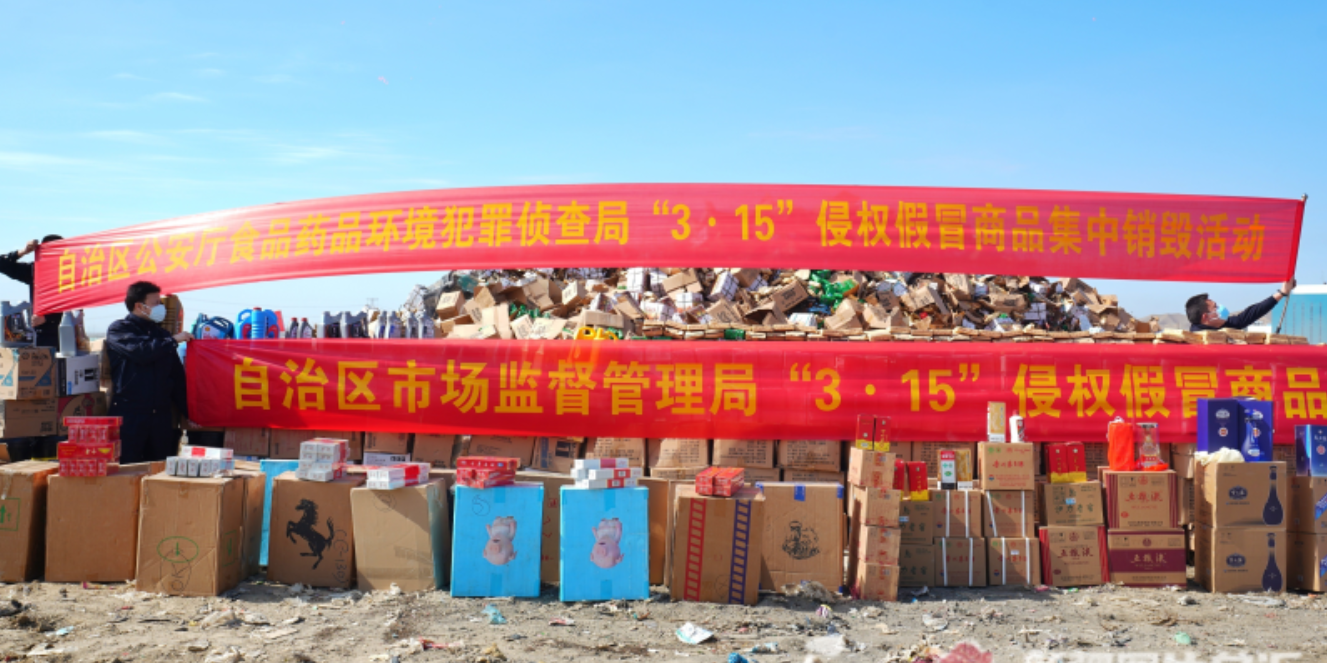 ![]() 为震慑制售侵权假冒商品违法分子,3月14日,自治区市场监督管理局、自治区公安厅食品药品环境犯罪侦查局、新疆生产建设兵团第十二师市场监督管理局联合在乌鲁木齐市开展侵权假冒商品集中销毁活动。
